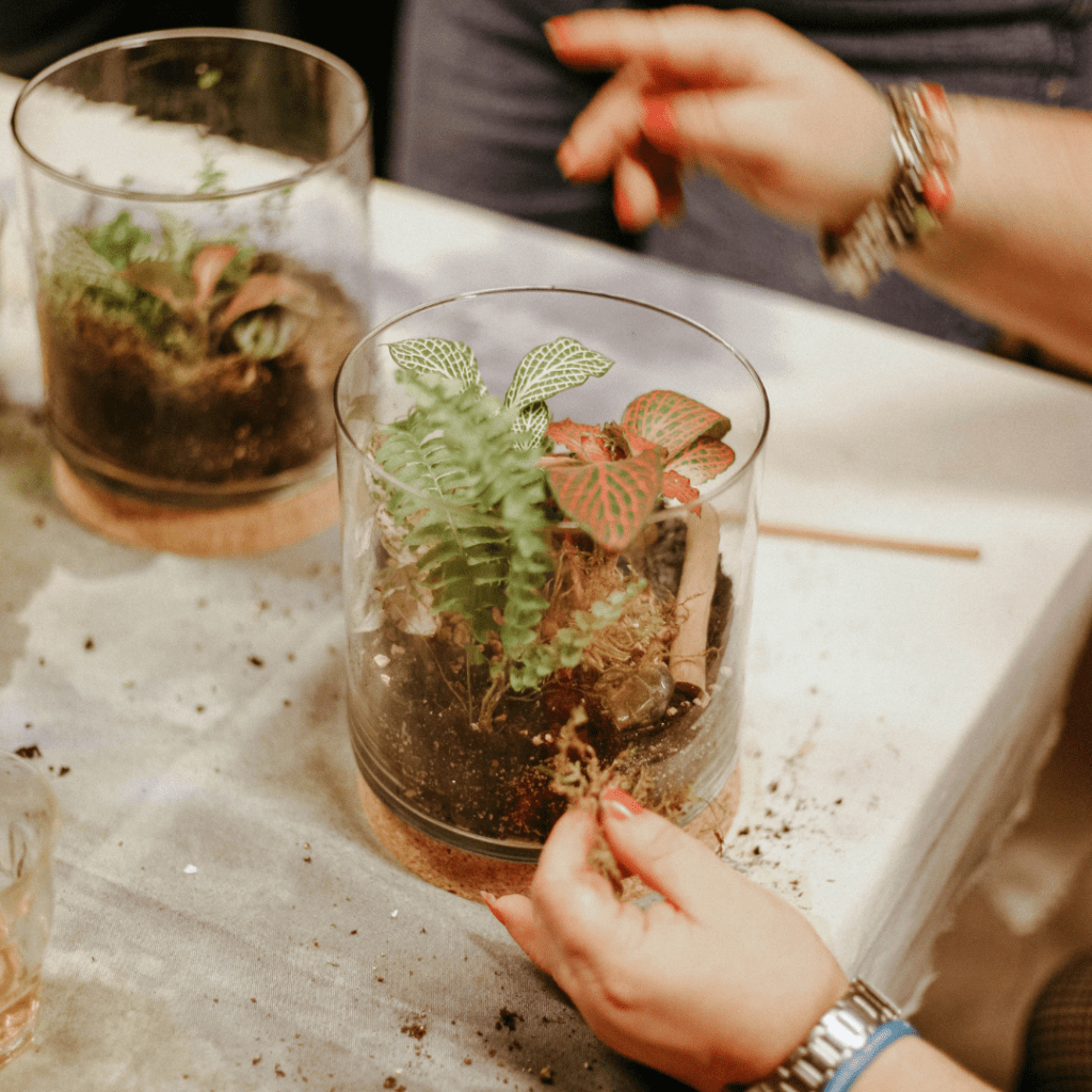 #1 Taller de Terrarium: Como amantes de las plantas, a todos nos encanta ensuciarnos las manos. ¿Y qué mejor que regalar una experiencia, creando una selva en un tarro? Además, es muy fácil mantener estas bellas obras de arte. Por eso los talleres de terrarios de nuestra comunidad son la mejor elección para cualquiera, tenga o no un pulgar verde.